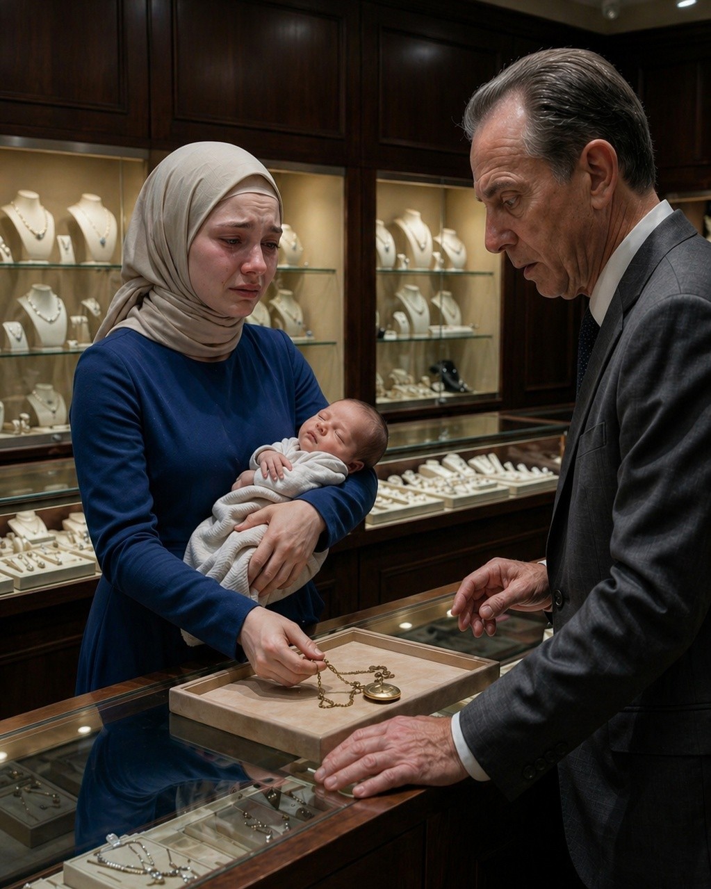 İstiklal Caddesi’ndeki kuyumcu dükkânı küçük ama zarifti—normalde asla girmeyeceğim türden bir yer. Şişmiş ayaklarla, dağılmış saçlarla ve göğsüme bağlı şekilde uyuyan oğlumla içeri girdim. Koyu takım elbiseli yaşlı dükkân sahibi beni başta önemsemeyecek gibiydi—
